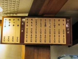 注文は奥のカウンターで代金と共に直接注文します。蕎麦だけでなくご飯もの、組み合わせものもあります。今回は立ち食い蕎麦の定番である、かき揚げそば\370を注文しました。 |