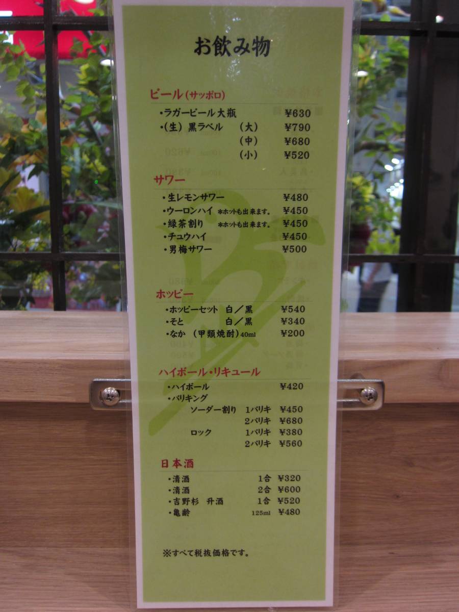 メニューを見ると、本店と変わらないお値段には参っちゃうな。立ち呑みでこのお値段なら引いちゃうな。 |