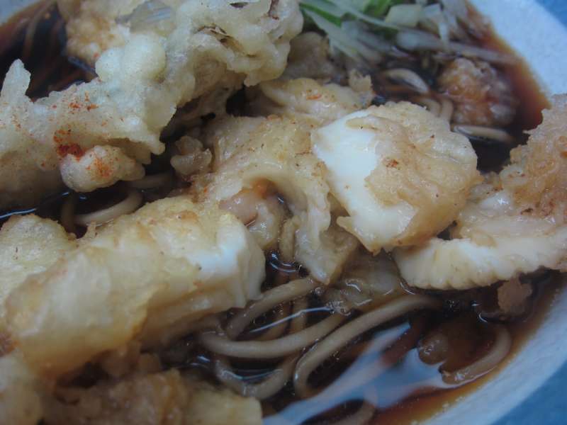 今日の朝めしは柳屋で、かけそば\350に春菊天\120とげそ天\170を載せてね。 |