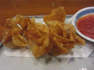肴はまずは目に付いた揚げワンタン\350。小さめのワンタンを揚げたmのです。ケチャップベースのタレを付けていただきます。これがなかなかビールに合うんですね。薄目の皮のパリパリっていう感触がいいね。 |