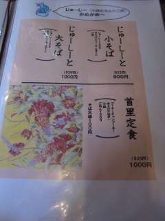 メニューは沖縄そばを中心に夜は居酒屋使いとなるようで、沖縄料理や焼酎、泡盛などの名も並んでいます。今回は沖縄そばと言えばラフテーとソーキ!その2つが載った首里製麺\980をいただくことにしました。 |