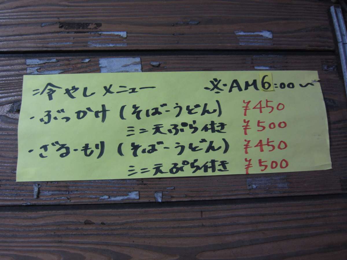 少し待ってできたぶっかけそばは、平皿に盛られたもの。かけそばが¥330だから、ちょいと割高感はあるよね。 5個盛られたイカゲソは、衣が厚めのクリスピータイプ。中にはデカイぶつ切りのゲソが入っています。ゲソは柔らかめなんだけど、衣が硬めなんで、食べていくと顎が痛くなるのよ。これは温かいそばでふやけさせた方がいいかな。冷たいつゆで、さっぱりと食べられたそばでした。ごちそうさまでした。 (22.7) |