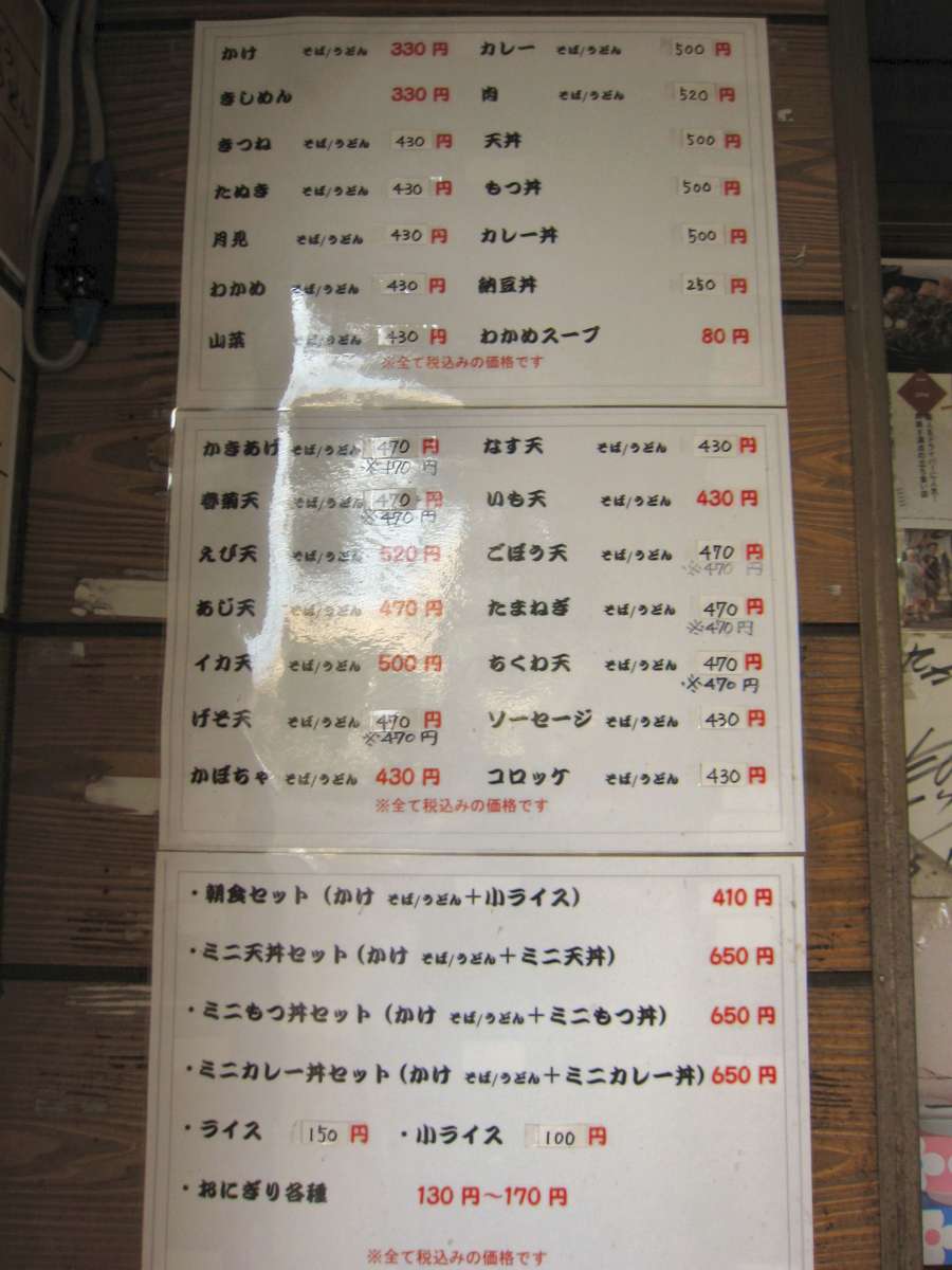 今回もお気に入りのげそ天と玉ねぎ天を追加してね。でも、こちらのお値段の計算が合わないのよ。かけそば¥330+げそ天¥110+玉ねぎ天¥110=¥550なんだけど、げそ天そば¥430+玉ねぎ天¥110=¥540なのよ。バラで頼むより¥10安いのね。次はそうしてみるよ(>o<) |