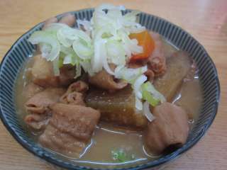 肴は定番のもつ煮込みからなんだけど、ハーフサイズ\280があったからそちらでね。とはいえ、1人で食べる分には全く問題なし!もつがたっぷり入っていて、しかも柔らかくてね。 |