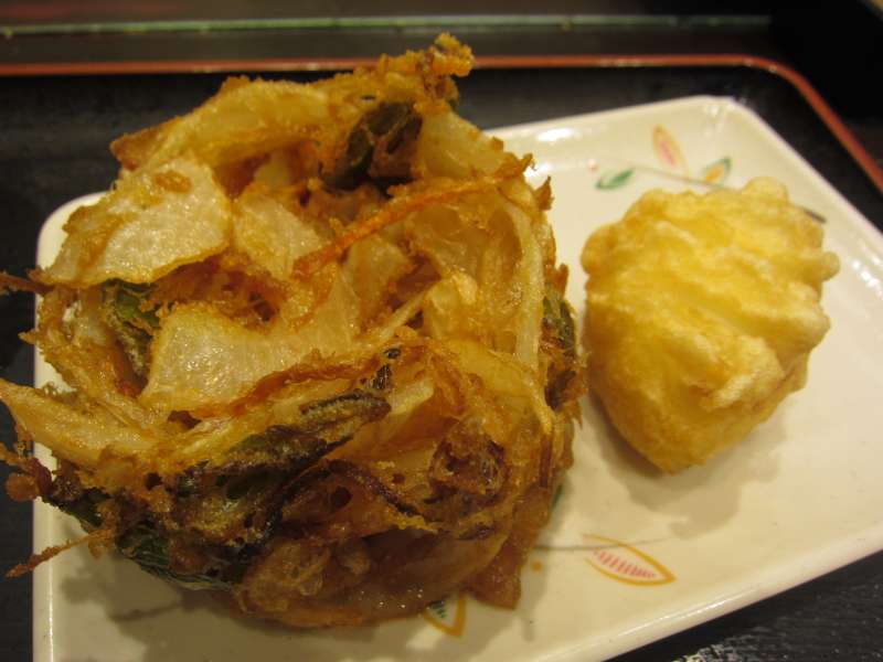 ミニかき揚げは、玉ねぎメインで、ニンジン、ネギなどが入っていて、揚げたてだったせいか、玉ねぎの甘みがとてもあってね。 |