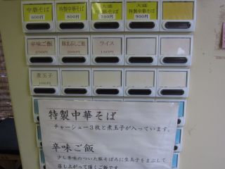 注文は入口にある券売機で食券を買う方式です。メニューは、中華そば\600とチャーシュー増量と煮玉子が載った特製中華そば\800があるだけです。食べるなら、特製が絶対にお得に見えるので、ここは特製中華そばを食べることにしました。 |
