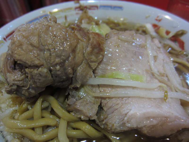 | 久しぶりに二郎の味を味わいたくなって訪れました。しかも、豚増しがあった上に並び 無しだったので、ついつい引き込まれてしまいましたm(_ _)m 注文は当然のことながら豚入りラーメン\800です。 |