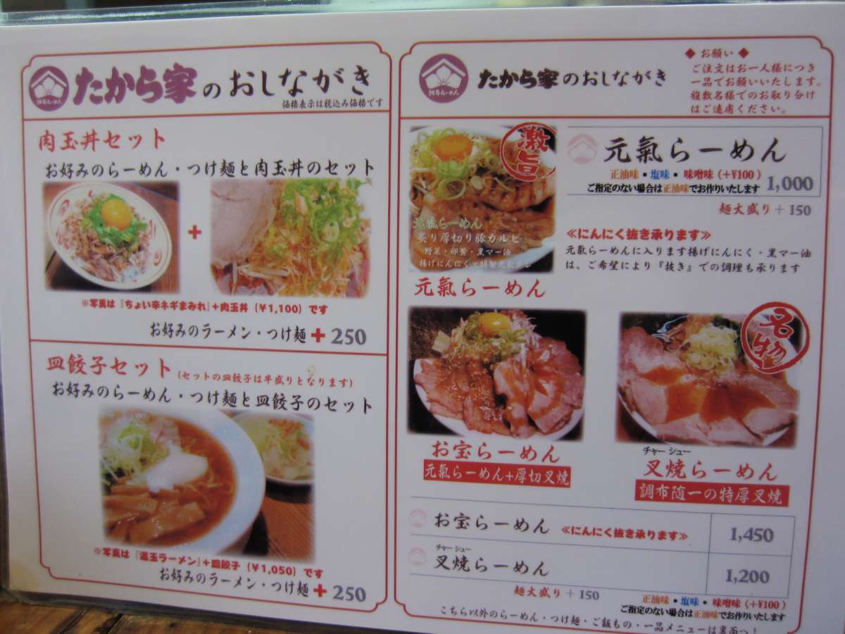 久しぶりの再訪です。メニューはラーメンをメインにチャーシューなどでバリエーションを出しています。今回は全部載せ?の元氣らーめんをいただきました。醤油、塩、味噌とスープを選べるということなので、塩でお願いしました。 |