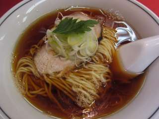 すぐに運ばれたラーメンを見ると、透明感のある醤油ス−プにチャーシュー1枚に刻みネギのみというシンプルなラーメンです。まずはスープを啜ると、ほのかに煮干しを感じる中にしっかりと醤油のコクを感じるもの。何でも数種類の醤油をブレンドしたものだそうで、う・ま・いです。麺は通常と同じもののようです。あっさりとした中にしっかりとコクを味わえるラーメンでした。ごちそうさまでした。 (13.12) |