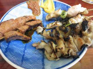 焼き鳥は2本以上の注文制限ありです。どうして2本以上の注文が必要なのかな?今回はねぎま\110、とりかわ\110、レバー\110を注文です。ねぎまととりかわは鶏肉を使っていますが、レバーは豚ですね。たまに豚レバーもいいもんです。まあ、\110ならほとんどの人がOKじゃないかな? |