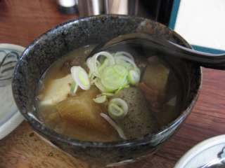 まずは煮込み。もつと豆腐、ニンジンなどがしっかりと煮込まれています。もつも臭みがなく、柔らかくなっています。ボリュームもあるしね。これは酒が進みます。 |