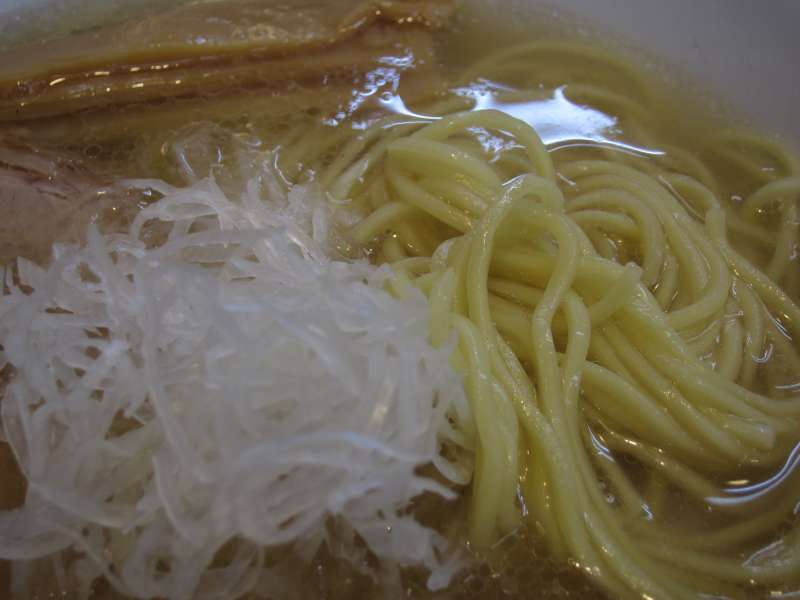 今日は久しぶりに寄りました。今日のお目当ては未食の豚軟そば¥800です。 そう待たずに運ばれたラーメンは、塩ラーメンのように透き通った透明なスープに大きな肉が3つとメンマ、海苔が載ったものです。スープを啜ると、柔らかさの中に生姜の辛みを感じます。麺は中太のストレート。鹹水多めの麺ですかね。メインの豚軟骨煮はかなり大きめ。とても柔らかく煮込まれていて、とろける感じです。美味しいです。ボリュームもあり、満足の一杯でした。ごちそうさまでした。 (17.12) |