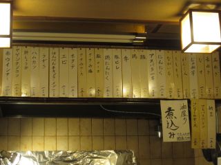 串カツのメニューは豊富です。色々あって、何を食べようかと迷ってしまいますね。 |