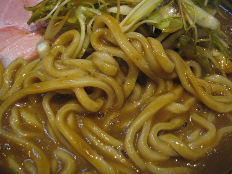運ばれたラーメンは、肉厚の豚チャーシューに鶏チャーシュー、味玉に青菜かな? アブラ多めのスープを啜ると、醤油が強めのもの。ちょっとだし感は少なめで、醤油の香りがたっています。 豚チャーシューはいつも以上に肉厚でたっぷりと肉を味わえました。鶏チャーシューは豚チャーシューとは味と歯応えの違いを楽しめました。ごちそうさまでした。 (21.3) |