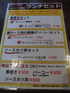 メニューは「食堂」とはいうものの、ラーメン中心のメニューです。醤油ラーメンと塩ラーメンがメインで、トッピングでバリエーションがあるようです。今回は塩ラーメンにチャーシューを載せた潮チャーシューメン\850を注文しました。 |