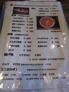 メニューを見ると、地魚が専門の店かと思っていましたが、カツ丼などもある、普通?の食堂のようです。今回は海鮮三種漬丼\1100と湘南を意識して、しらすかき揚げ\600をいただくことにしました。 |