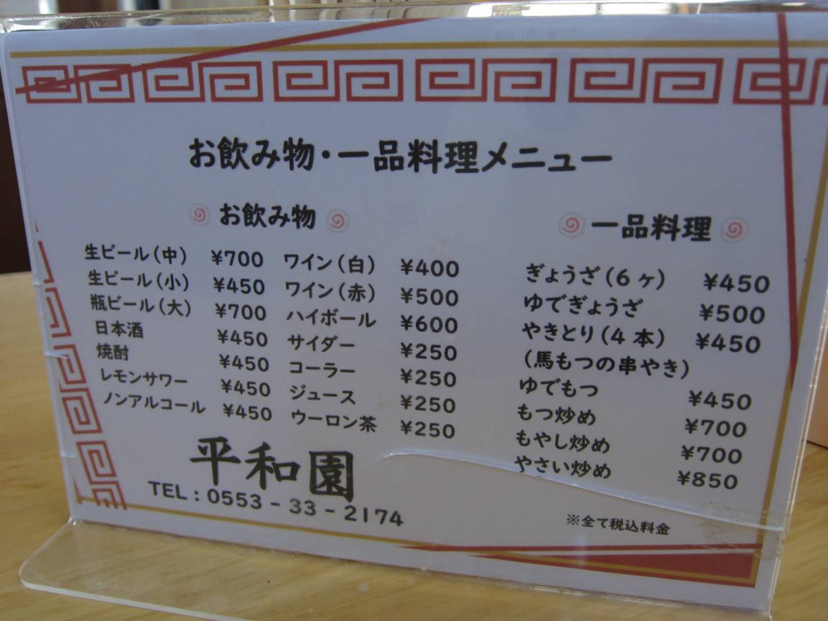 久しぶりの平和園。10年以上寄ってなかったですね。昔からジモに愛される塩山駅近くの昔ながらのラーメン屋です。 |