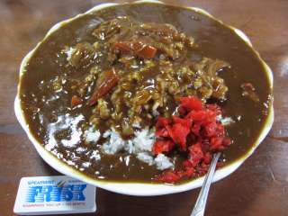 メニューを見るとそんなに種類は多くはないのですが、ラーメンから丼物、揚げ物まで揃っています。何を食べようかと迷ったのですが、無難なカレーライスを食べることにしました。でも、そんなに食べられそうになかったので、ご飯は少なめにお願いしたのですが… 旦那さんがニヤリとしたのが、ちょっと気になったのであります。 |