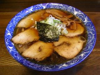 今回はちゃーしゅー麺\850を注文しました。 出てきたちゃーしゅー麺は魚介の香りが漂うスープ。適度に脂が浮いています。そこにチャーシュー6枚、メンマ、刻みネギ、海苔が載っています。スープを啜るとすっきりした味で好みの味。麺は中くらいの太さです。チャーシューは適度な脂身があり、しっかりしたおいしいチャーシューでした。 (08.11) ※新店舗に移転していました。 (17.1) |
