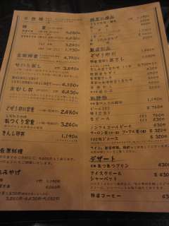 メニューは定番の鰻重、鰻丼だけでなく、まむし丼、せいろ蒸しなどいろいろとあります。うなぎだから、やはりちょっとお値段張ってしまいますね。訪れた時も何を食べようか迷いましたが、鰻重の「上」\1890のみしか残っていないそうです。もちろん、高いうなぎは食べられる訳もないので「上」を食べようと思ったのですが、高いものから売れていくなんてちょっと信じられません。 |
