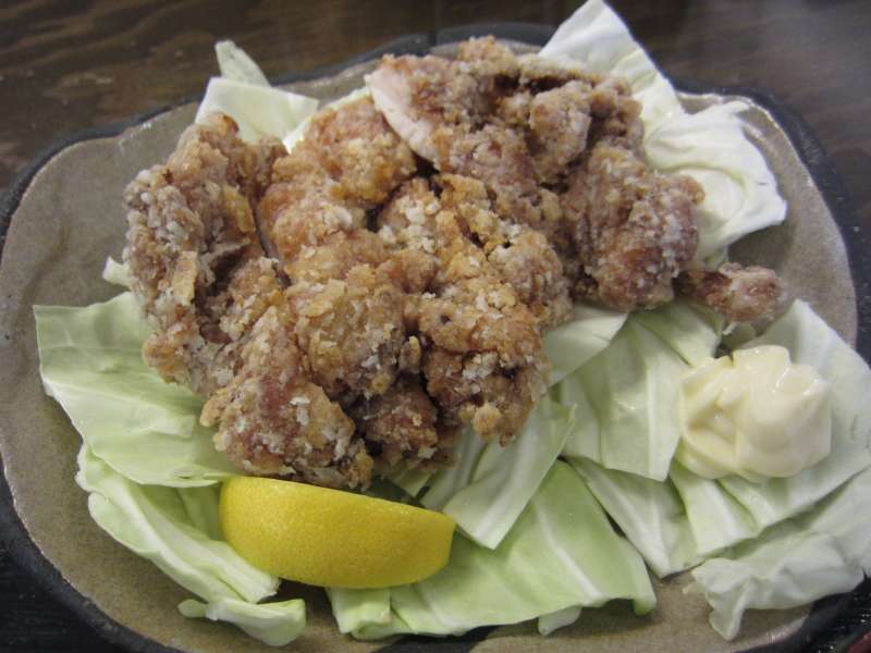 まずは蕎麦から運ばれました。セットものなので小盛りかと思いきや、ちゃんとした並盛り。更級系の蕎麦で蕎麦屋らしい、香りがあり旨い蕎麦です。ツユは醤油が濃いめのものでした。 |