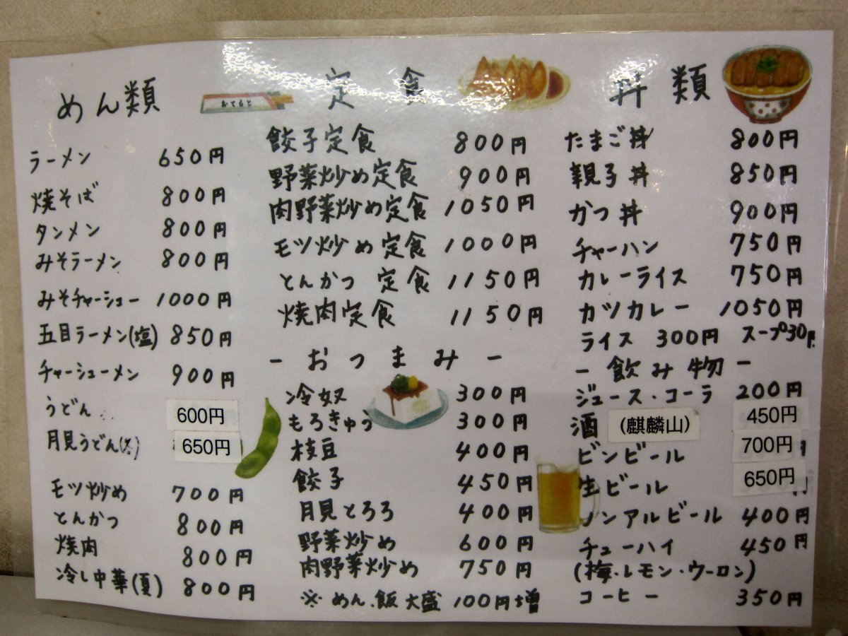 メニューを見ると、ラーメンなどと定食に丼ものの組み合わせ。今日はとんかつ定食\1150をいただくことにしました。 |