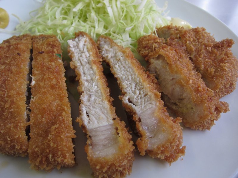 そう待たずに運ばれた定食は、とんかつに漬物と冷奴の定番の組み合わせ。 |