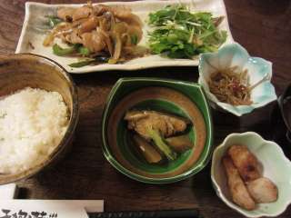 けっこう待って運ばれた定食は、生姜焼きだけでなく煮魚の小鉢ときんぴらごぼうなどもついていてボリュームもあります。そして見た目も鮮やかで女性受けしそうです。味付けもよく、しっかりとお腹も満足しました。 |