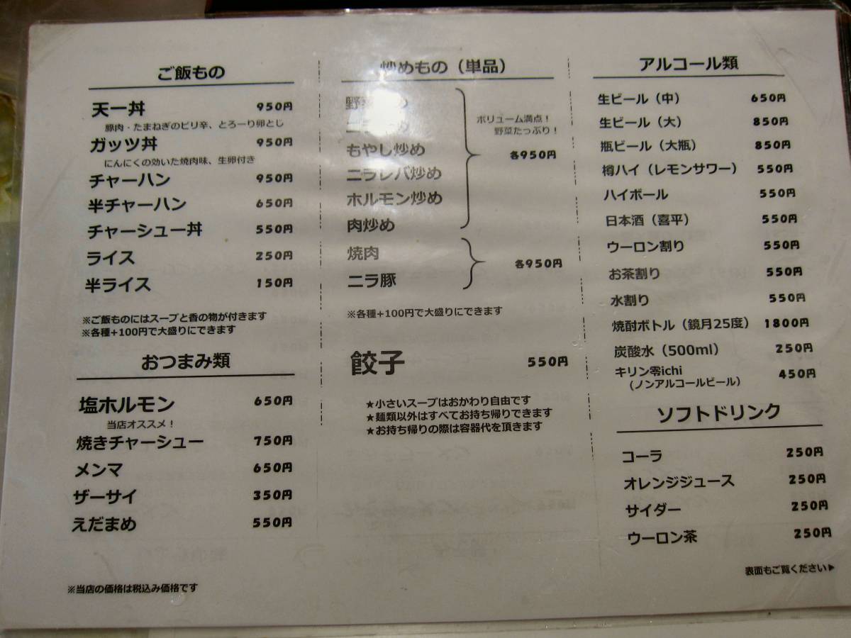 メニュー見ると、ラーメンメインですが、ご飯ものなどもあります。夜は居酒屋ぽくなるみたい。ややお値段高めかな?で、今回はチャーシューメン\1050をね。 |