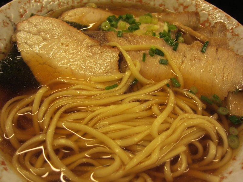 スープを啜ると、アブラがほとんど無い、シンプルにあっさりとしたもの。チャーシューはもも肉とバラ肉が3枚ずつ入っていて、ももはしっかりとした歯応え。バラ肉は柔らかいもの。肉質の違いを楽しめてよかったです。