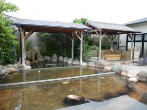 | 岩風呂の「四季の湯」は奥が熱めでオーバーフローした湯が他の湯舟に流れ込み、異なる湯温で楽しめるようになっています。こちらの湯は加熱していますが、他の湯は源泉かけ流しと謳っていますが、わずかに加熱しているようにも思えます。 | ![]() |