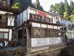 | 木造3階建の宿が建ち並び、昔の面影を残す銀山温泉はたくさんの人が訪れる人気の温泉です。その温泉街の真ん中に共同浴場の大湯があります。昨年、小関館に泊まった時は時間がなくて湯に浸かることができませんでしたが、今回は友人と共に訪れました。 湯番さんはおらず、入口の料金箱に入浴料を入れて利用します。観光で訪れた人もけっこう利用しているようです。 |