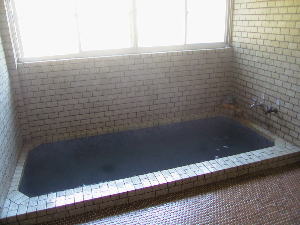 | 湯船は5〜6人ほどが浸かることのできる大きさで、タイル張り。源泉が冷たいので循環しています。そのためか、ちょっと湯の印象が薄いのですが、すべすべ感は結構ありました。蛇口をひねると、源泉を加熱したと思われるかなり熱い湯があふれてきます。湯を飲んでみると、玉子臭、玉子味の硫黄泉らしさを感じるいい湯でした。 |