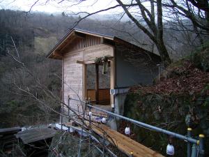 内湯に浸かったあとに奥にある露天風呂に行こうとしたら、露天風呂が無くなっているので驚いてしまいました。宿の方に聞いたところ、露天風呂のあったところに新しい湯小屋を造るのだそうです。現在は基礎の工事を進めているところでした。そして、露天風呂が無くなった代わりに新しい露天風呂「天空の湯」ができていました。こちらは男女交代制で利用するようになっていますが、工事中の現在、仮通路で行くようになっています。 「天空の湯」は木造りの小さな小屋で開放的な造り。5〜6人が浸かることができる大きさになっています。高台にあり窓ガラスもないのでちょっと風が吹くと寒く、ぬるめの湯と言うこともあって長湯は辛かったです。 なお、新しい湯小屋ができると現在の温泉棟は帳場と食堂となり、現在の浴室は無くなってしまうそうです。新しい湯小屋ができるのは楽しみですが、今の浴室もなかなかのもの。2007年中には新しくなるそうなので、気になる方はお早めに! |