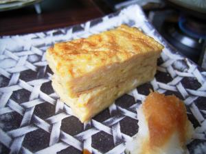 | 朝食には珍しい鮎の開きなどと一緒にすいとん、厚焼き玉子などが並びました。特にすいとんと甘く味付けした厚焼き玉子はおいしく、お代わりしたいくらいでした。 |