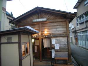 | かわらや旅館の浴室のすぐ隣に建つ小さな共同浴場です。路地といった感じの場所にあり、よく探さなければ見つかりにくいかもしれません。 |