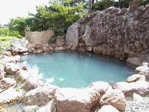 | 露天風呂には薄く白濁した湯が満たされていました。高原の風を受けながら湯に浸かることができました。 ※廃業となったようです。 (10.6) |