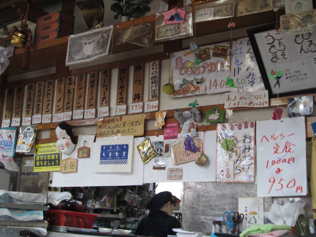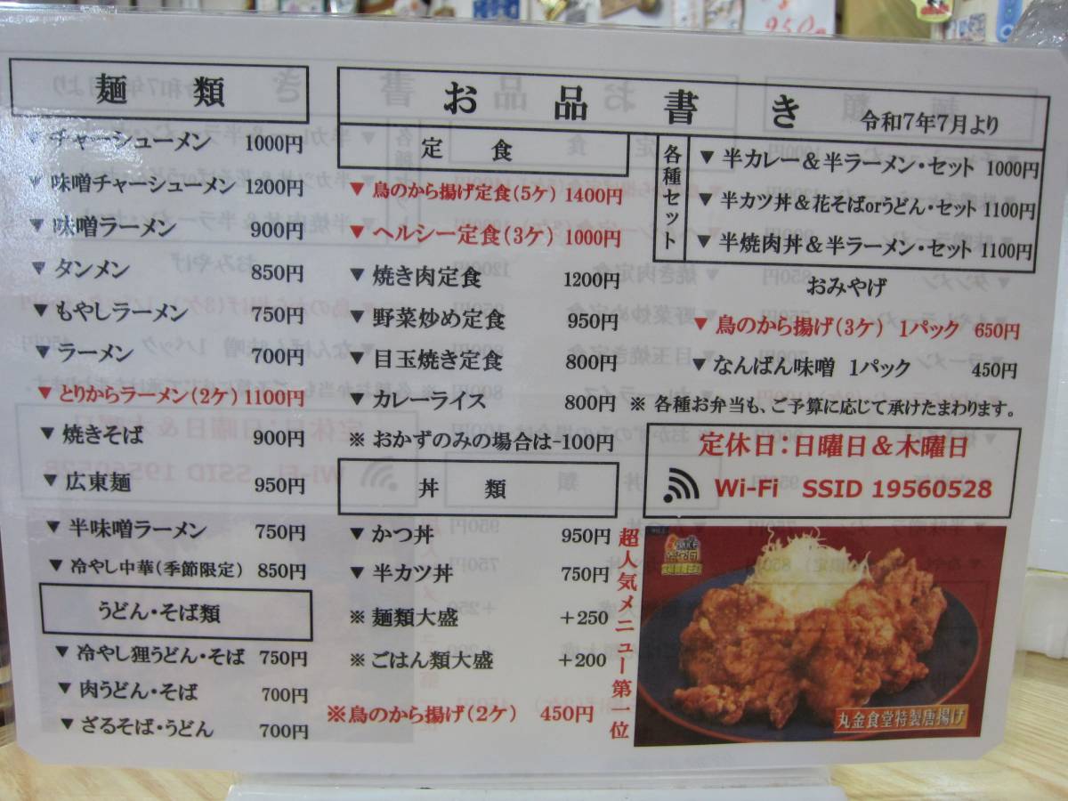 さて、メニューを見ると、ラーメンに蕎麦・うどんに定食と色々と揃ってますね。でも、よく見ると、鶏の唐揚げが売りみたいですね。唐揚げが5個盛られた、鳥の唐揚げ定食が¥1400。3個盛りのヘルシー定食が¥1000の他に唐揚げを2個載せた、とりからラーメン¥1100も気になったんだけど、白めし食べたかったから、ヘルシー定食\1000にしてみました。 |