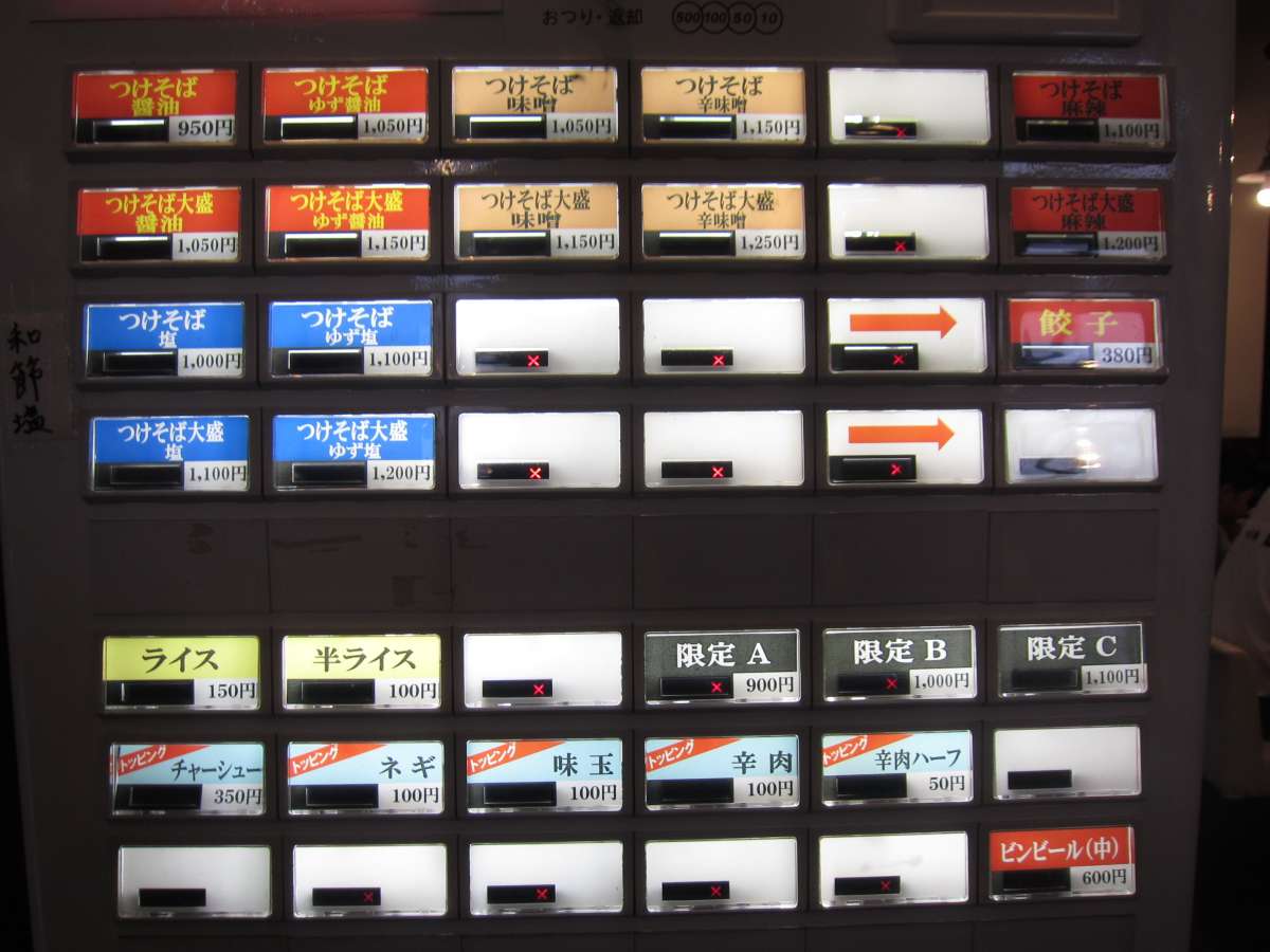 今回の注文は、左上の法則で、つけそばの醤油\950をね。 |