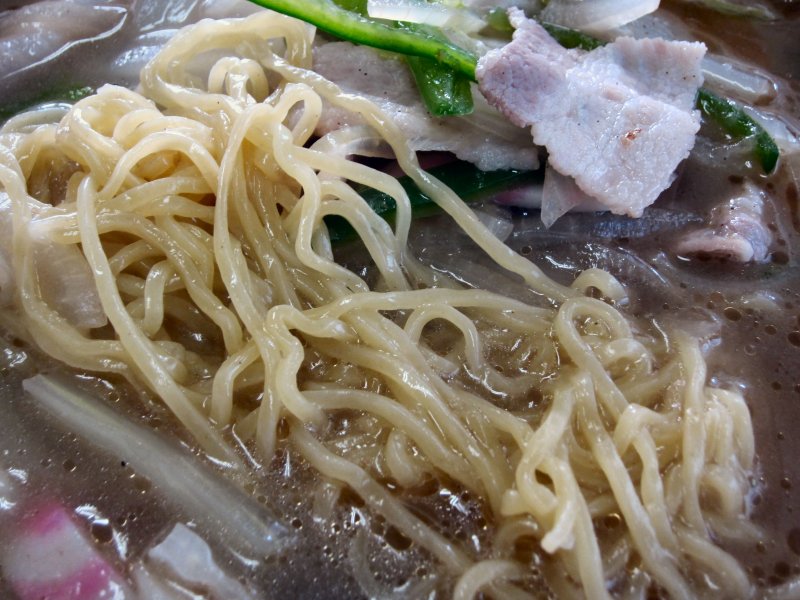 肉だけでもなく、あんかけでもない、肉野菜炒めをラーメンに載せたって感じです。スープも塩系ですね。同じ、肉そば、肉ラーメンと名乗っていても、店によってかなり違うんですね。やや胡椒が強めの味付けだけど、ボリュームあって美味しかったです。ごちそうさまでした。 (26.2) |