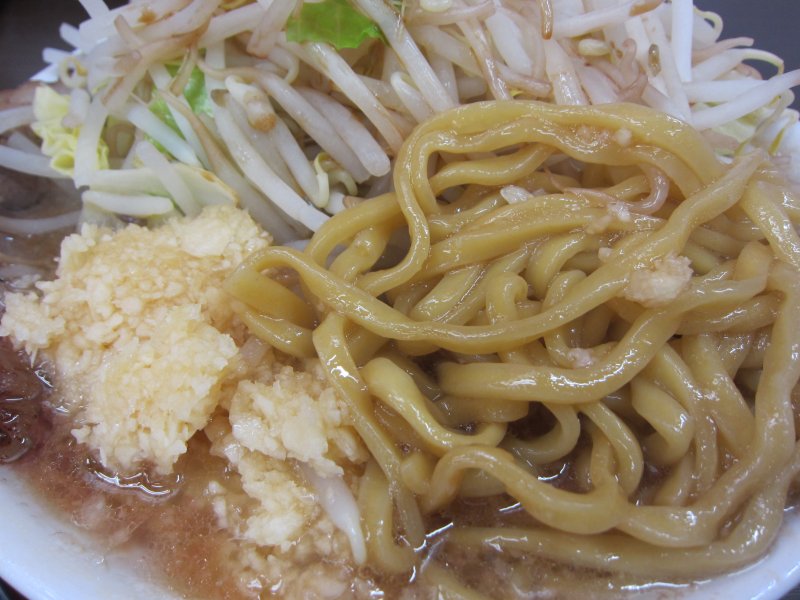 天地返しをすると、浅草開化楼の太麺が姿を見せます。ワシワシ感はそうないかな。でも、野菜と麺の破壊的なボリュームはスゴイよね。かなりお腹いっぱいになりますよ。スープもにんにくの風味が溶け込んで、これぞ二郎系といえる味。どうにか完食しましたよ。たまに食べたくなるんだよね、この味。これも二郎中毒に侵されてるのかな?ごちそうさまでした。 (26.2) |