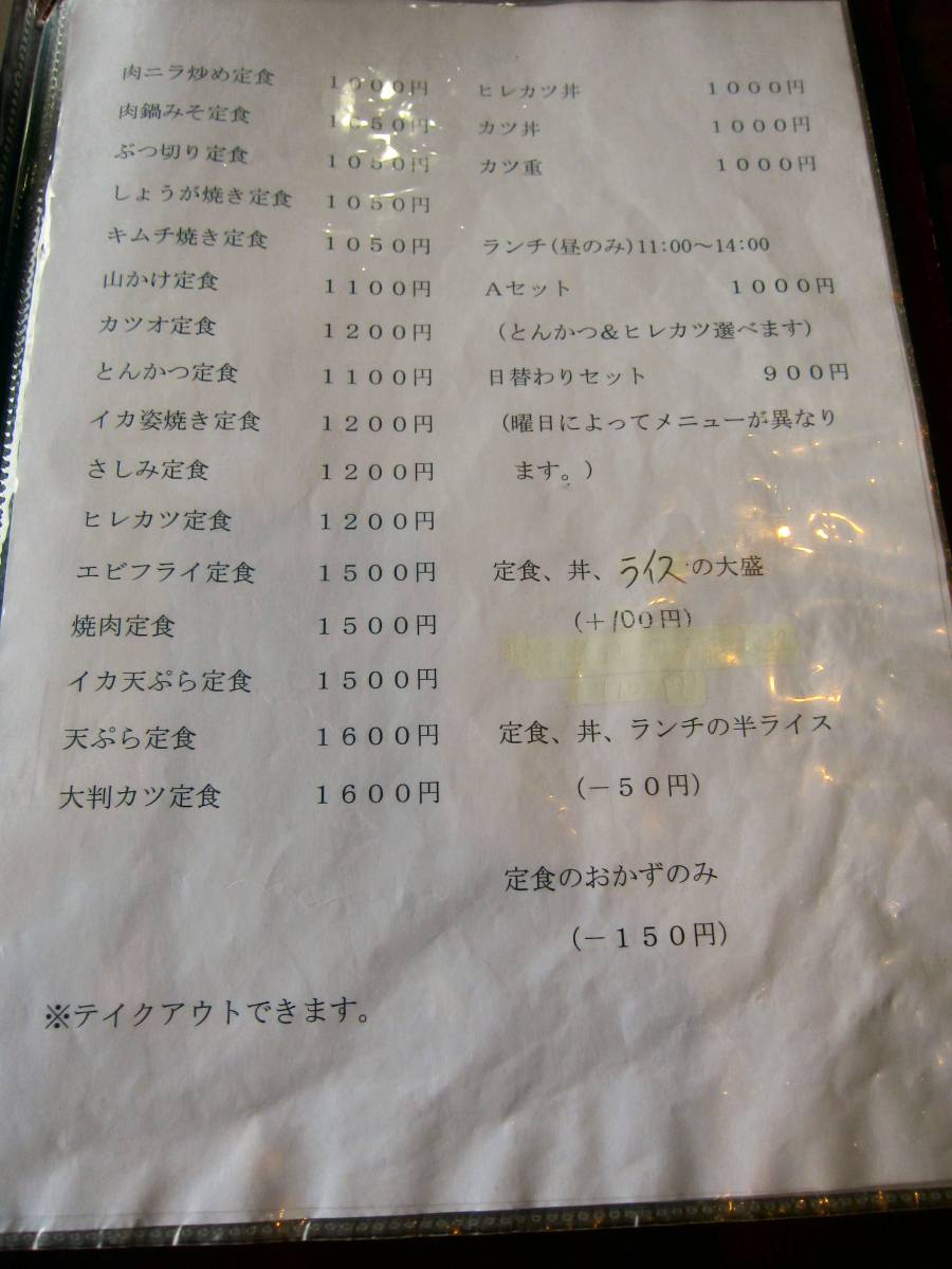 先日寄ったこちらの食堂。再訪してみました。 訪れてみると、昼間にも関わらず、トラッカーと思われる方々が呑んでるのよ(^_^;) 呑んだあとは休憩してから仕事に戻るんだろうけど、最近、J○Lでも飲酒不祥事あるからね〜 って、人のこと言える身分じゃないけどね。 さて、何食べようかと迷ったけど、たくさんあるメニューの中から選んだのは、定番のとんかつ定食\1100をね。 |