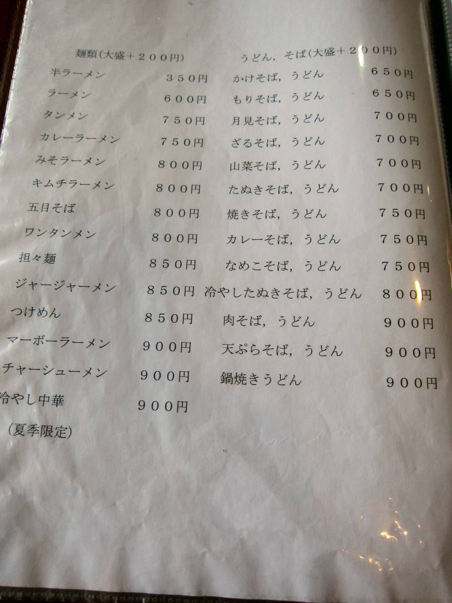 メニューを見ると、定食をメインにラーメン系、蕎麦系と誰が来ても対応できる、幅広い品揃えです。でも、そんなにお腹は空いてなかったので、軽くカレーライス\750をね。 |