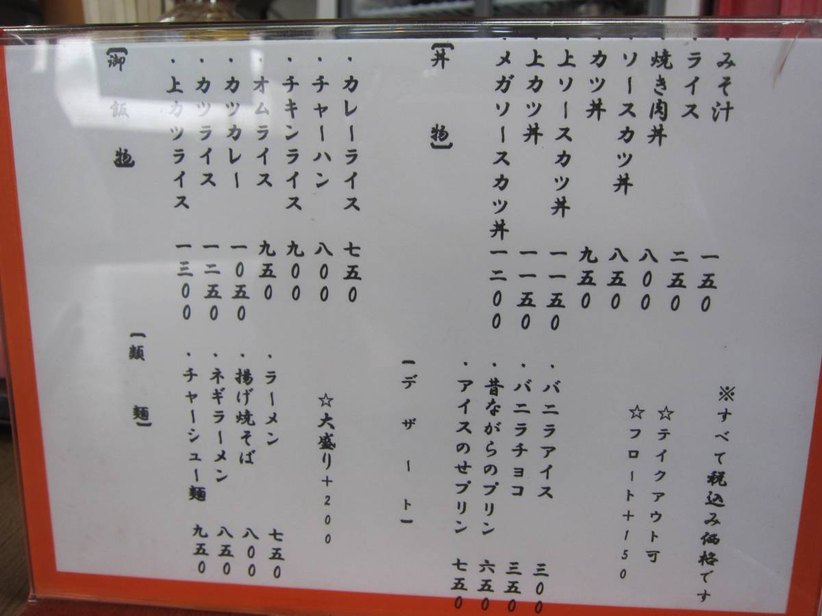メニューは変わっていないみたいだけど、お値段は少しね。さて、前回は売りのオムライスをいただいたので、今回は秩父の売りである?ソースカツ丼をね。並と上があるけど、並はロース、上はヒレという違いとのこと。で、今回は上ソースカツ丼\1150をね。 |