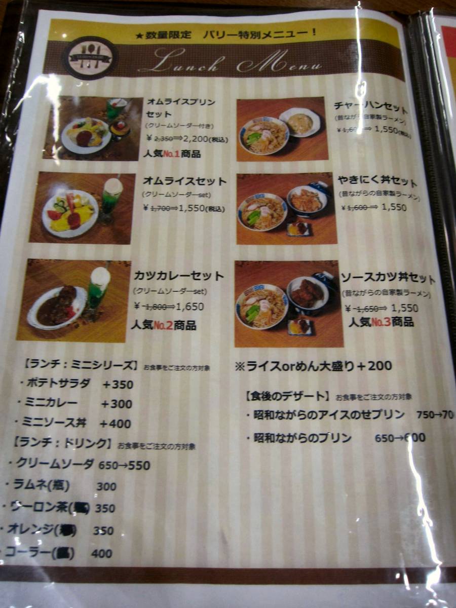 久しぶりのパリー食堂。平日であるにも関わらず人気の食堂です。やはり、このレトロな建物と雰囲気がいいんですよね。でも、登録有形文化財ということで、維持も大変みたいです。 |