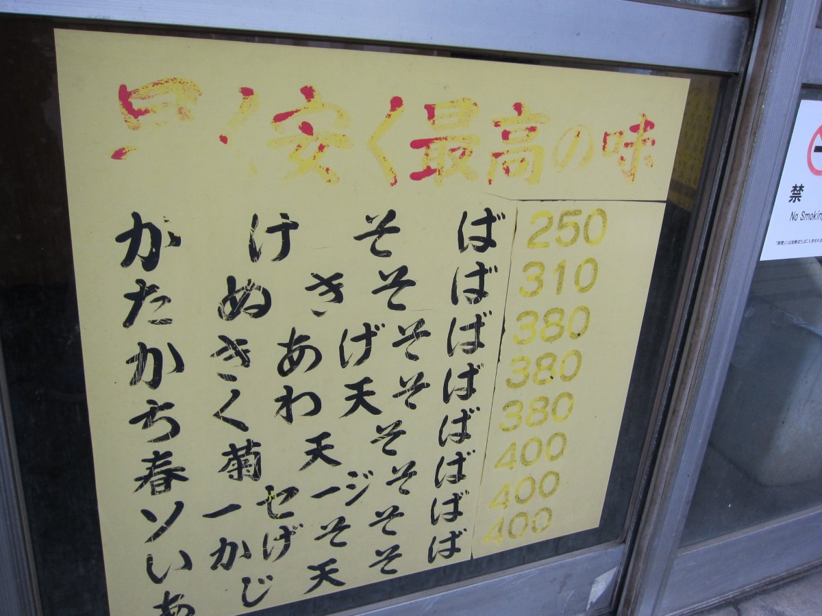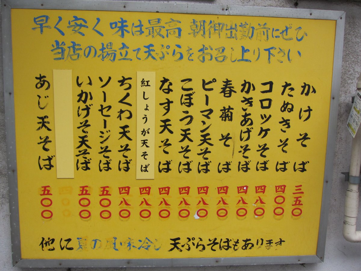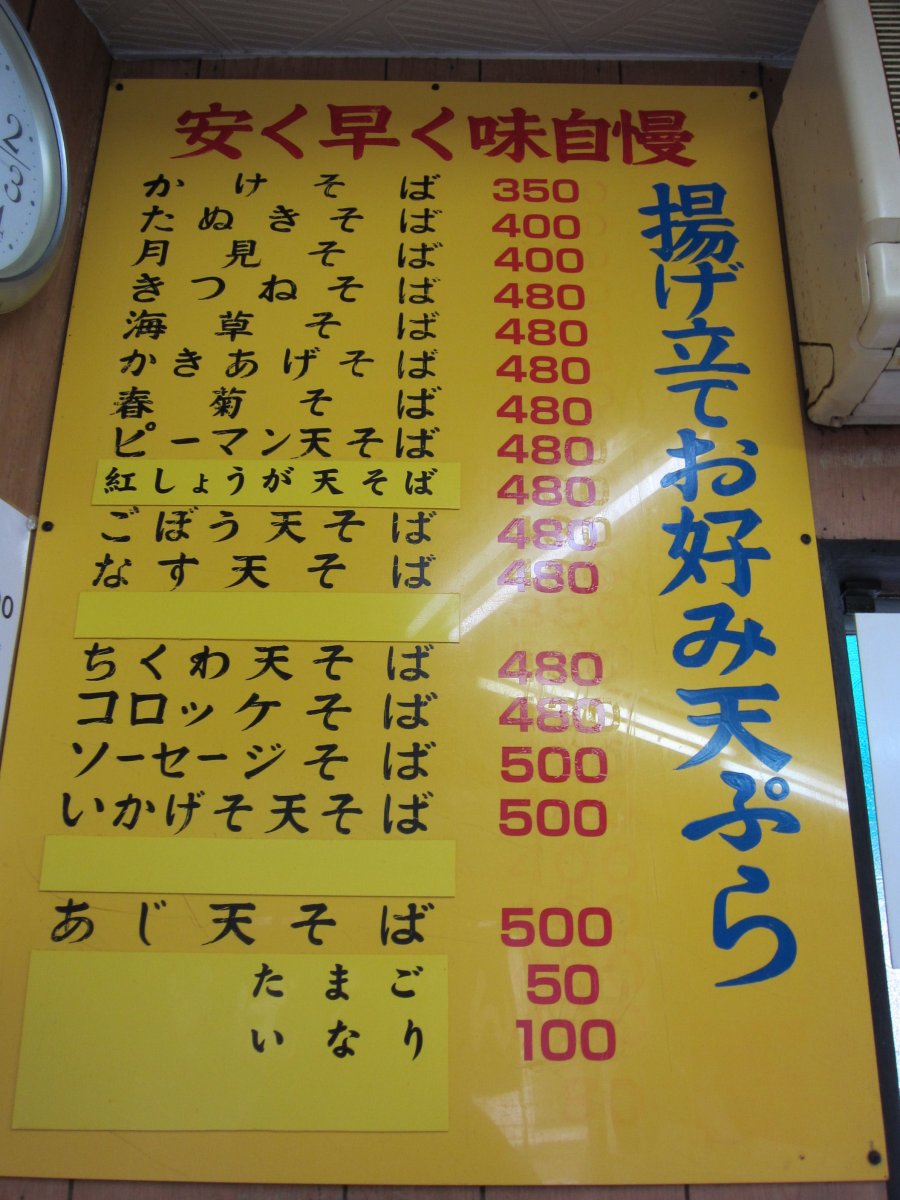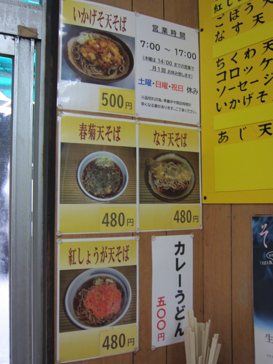 今日はかけそば\350にかき揚げ\130といかげそ天\150を載せてみました。 |