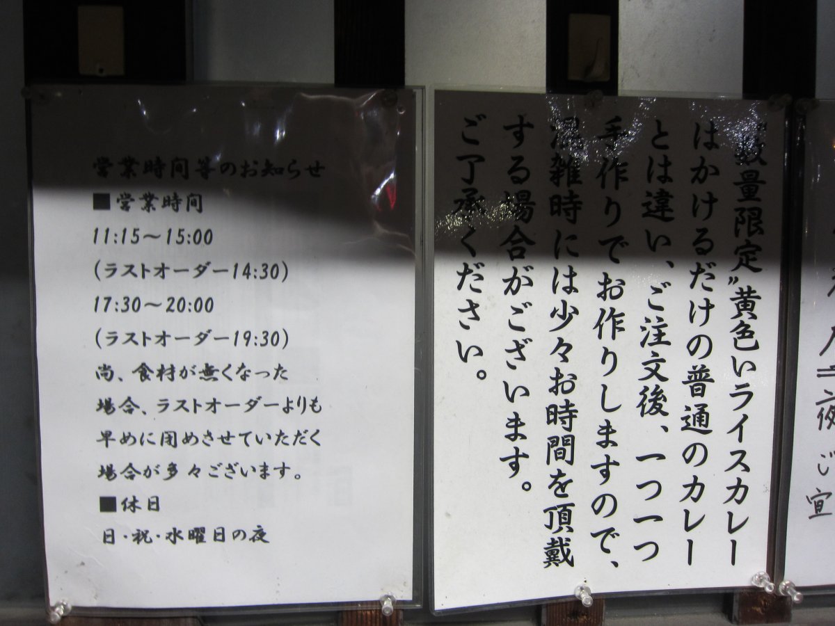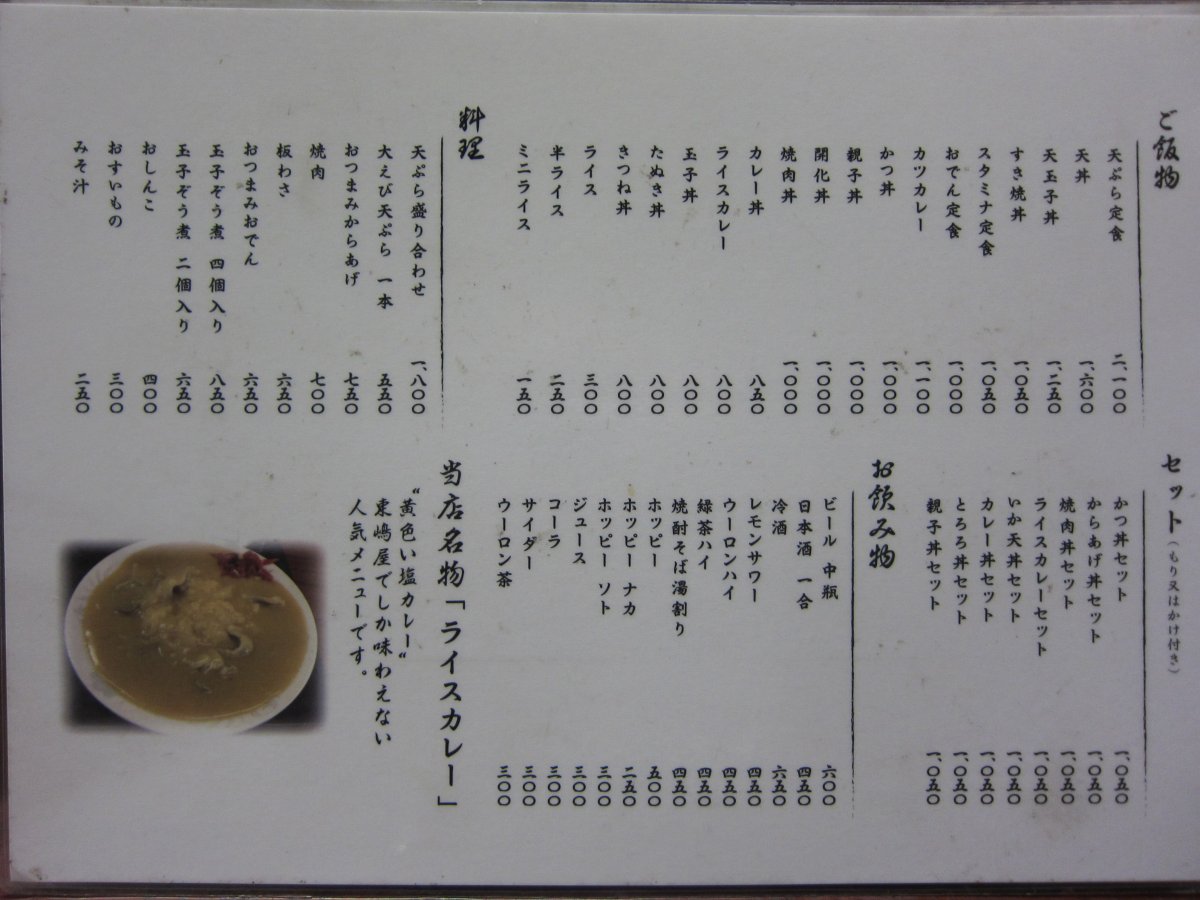 とはいえ、、今回はカレーがお目当て。カレー丼、ライスカレー、カツカレーとあるけど、カレー丼とライスカレーの違いはどうなのかな?皿と丼の違いだけかな?でも、今回はカツカレー\1100に決定です。 |