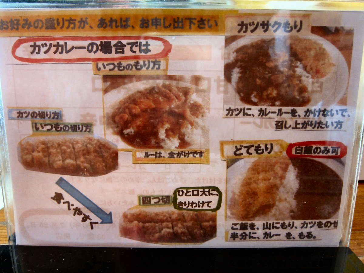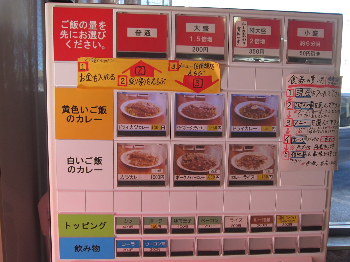こちらはカレー専門店なんだけど、人気はカツカレー。しかも、ご飯が白めしもあるけど、黄色いご飯のドライカレーのカツカレー\1300、こちらでは略して、ドラカツが人気とのことで、そちらにね。 券売機での食券を買うとすぐに店員さんに渡します。あとは食券の番号で呼ばれるので、食券番号は忘れないでね。 |
